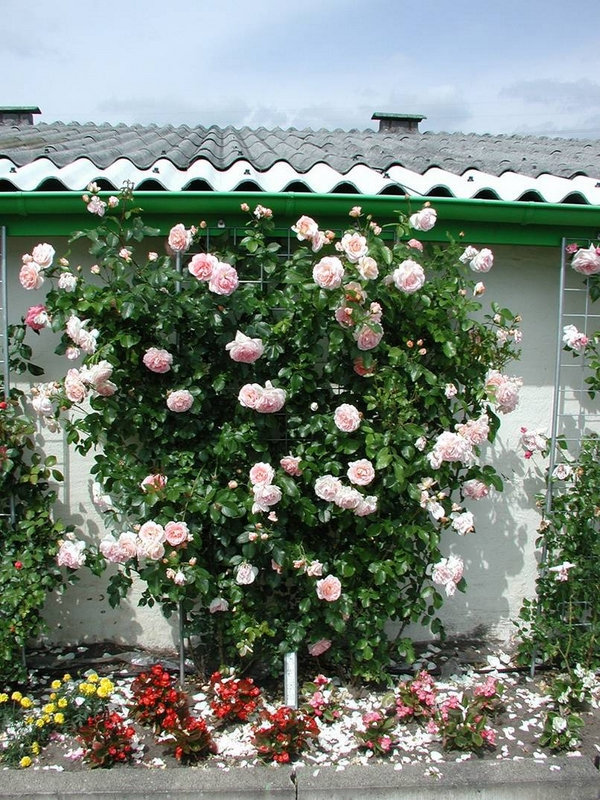 - широкий вибір сортів плетистих троянд;