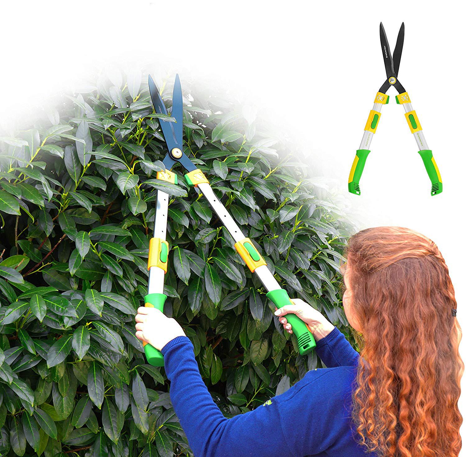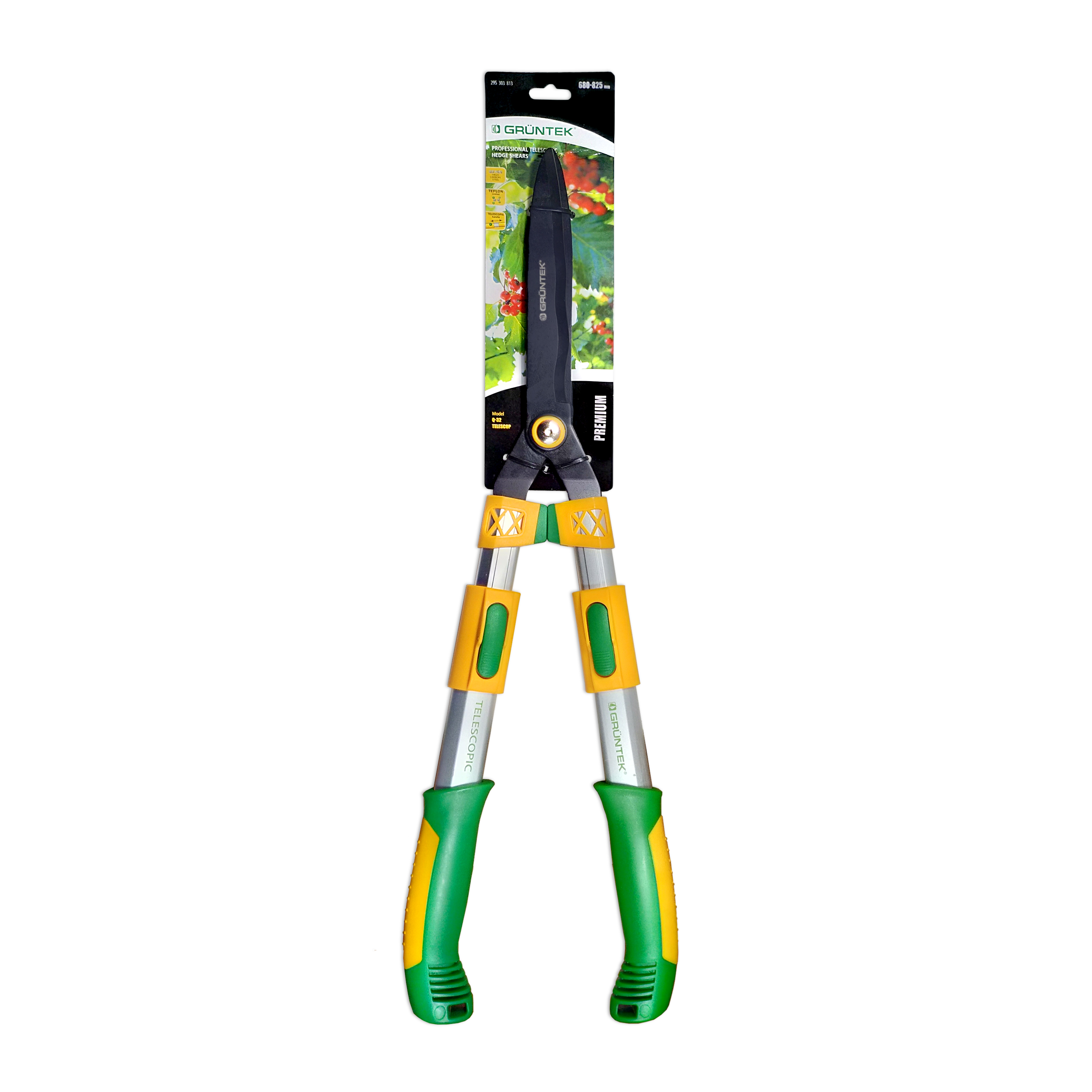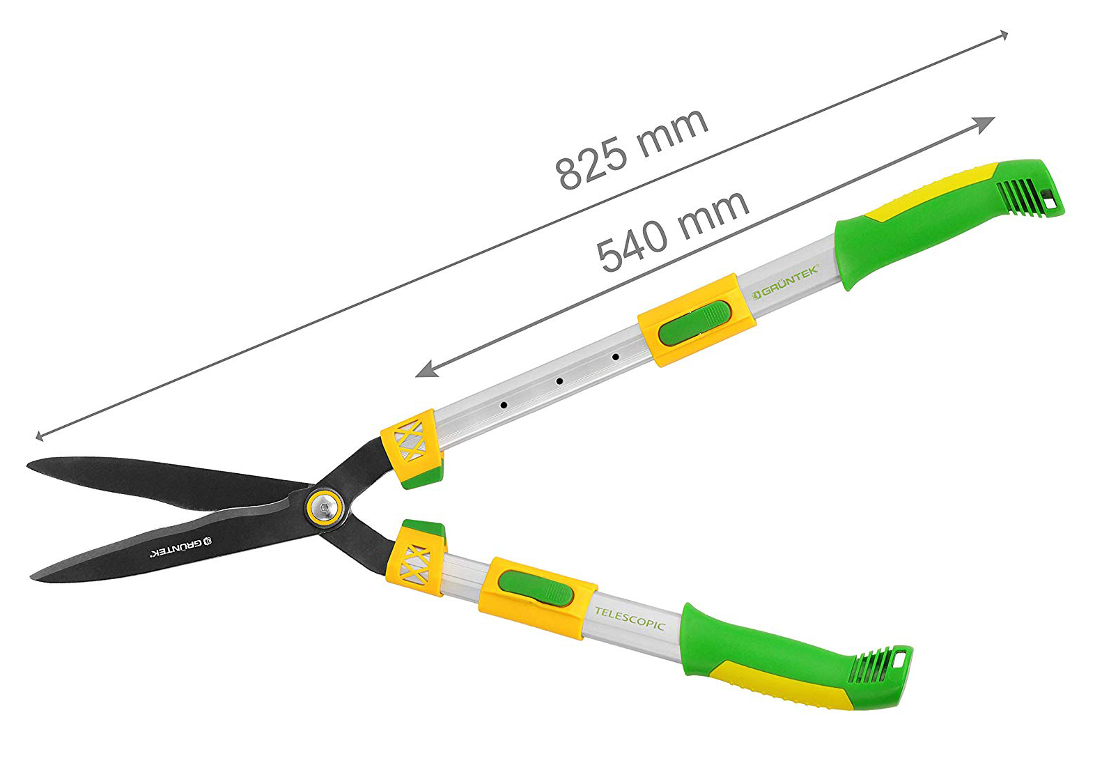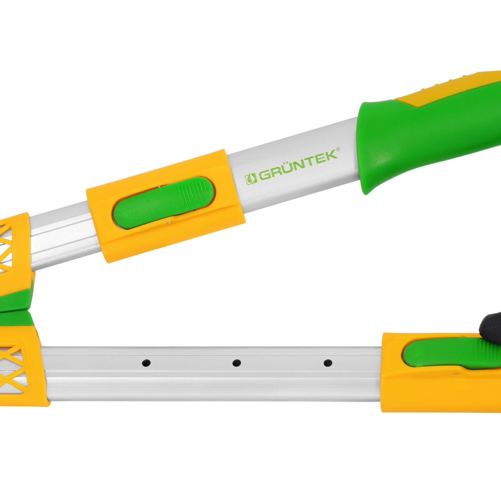 Рекомендовано для стрижки живої огорожі, у т.ч. у важкодоступних місцях та на висоті Легка вага Леза із загартованої високовуглецевої сталі 65MN Покриття TEFLON на лезі проти налипання Гвинт для регулювання зусиль та затискання лез Алюмінієві рукоятки з двокомпонентними накладками Довжина ножиць - 680-825мм "