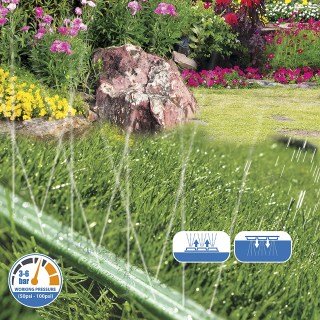 "Зрошувальна площа 90 - 336 м² Дальність 8м - 15м Максимальна ширина поливу 21 м Рекомендовано ддля середніх і великих прямокутних газонів і садових поверхонь площею до 336 м² при ...