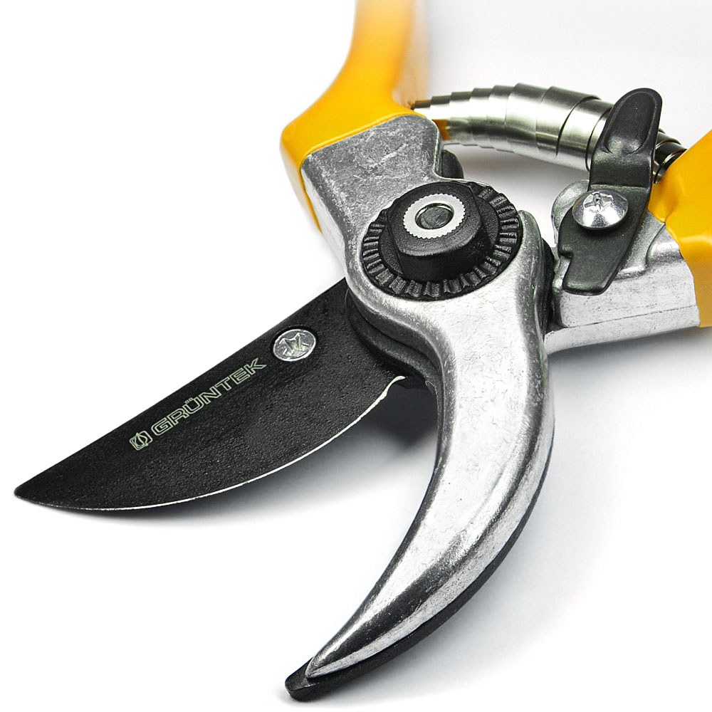 Рекомендовано для обрізки живих гілок Лезо із загартованої високовуглецевої сталі SK5 Покриття NON-Stick на лезі проти налипання Ергономічні алюмінієві рукоятки з покриттям з ПВХ. Довжина секатора 215мм "